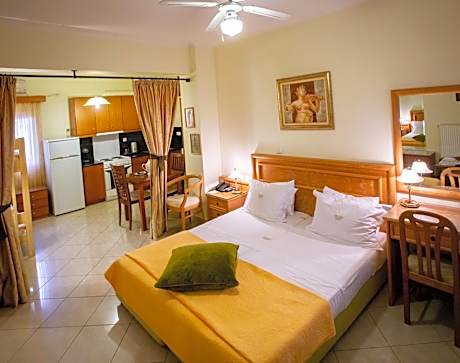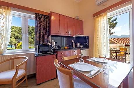 Offering garden views, Irida Beach Resort Suites in Kyparissia features accommodations, a garden, barbecue facilities, and a shared lounge. This beachfront property offers access to darts, free private parking, and free Wifi. The accommodation provides full-day security, luggage storage space, and currency exchange for guests. The condo hotel will provide guests with air-conditioned units with a desk, a coffee machine, an oven, a toaster, a safety deposit box, a flat-screen TV, a patio, and a private bathroom with a walk-in shower. There's also a dining area and a fully equipped kitchen with a fridge, a stovetop, and a minibar. Additional in-room amenities include wine or champagne, fruit, and chocolates or cookies. Buffet and continental breakfast options with warm dishes, local specialities, and fresh pastries are available. There is an on-site family-friendly restaurant, coffee shop, and bar. Dining options are available close to the condo hotel. The condo hotel offers a variety of wellness options, including a beauty services, an open-air bath, and yoga classes. For guests with children, Irida Beach Resort Suites offers an indoor play area, outdoor play equipment, and a baby safety gate. Snorkeling and cycling can be enjoyed nearby, while a bicycle rental service and a private beach area are also available on-site. Kaiafa Lake is 17 miles from the accommodation. Kalamata International Airport is 37 miles away, and the property offers a paid airport shuttle service.
