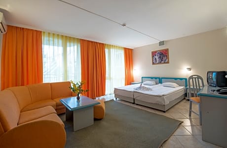 The comfortable and family-friendly Hotel Iskar is centrally situated in the popular holiday resort Sunny Beach, just a few steps away from the seemingly endless golden sandy beach and the pleasant waters of the Black Sea. The hotel was renovated in 2008 and features a delightful garden area with rare tree species, various sports facilities as well as a waterpark with slides. The centre of Sunny Beach with its restaurants, bars and shops can be reached within a 5-minute walk. An ideal choice for families with children.
