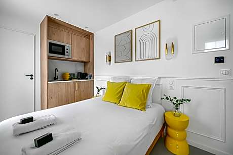 Featuring a garden, JIJI Suites offers accommodations in Combs-la-Ville. This recently renovated condo hotel is located 21 miles from Gare de Lyon and 22 miles from Opéra Bastille. The condo hotel features inner courtyard views, a sun terrace, a 24-hour front desk, and free Wifi is available throughout the property. The units come with tiled floors and feature a fully equipped kitchen with a microwave, a dining area, a flat-screen TV with streaming services, and a private bathroom with walk-in shower and a hair dryer. A fridge, a stovetop, and kitchenware are also available, as well as a coffee machine and a kettle. At the condo hotel, each unit is fitted with bed linen and towels. There is an on-site coffee shop. Val d'Europe RER Station is 23 miles from the condo hotel, while Notre Dame is 23 miles from the property. Paris - Orly Airport is 13 miles away.