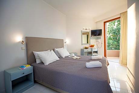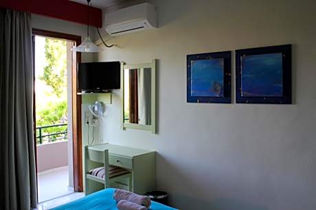 John Mary studios are located just outside of the lively resort of Faliraki, in Rhodes, minutes from lovely beaches with a number of water sports facilities. The complex features fully equipped, self-catering studios providing a comfortable accommodations and a pleasant atmosphere. Each comes with bathroom with shower, air conditioning, satellite TV and balcony. Free cribs are available upon request. The snack bar serves English or Continental breakfast and light meals all day long. In the evening, guests can taste special cocktails and ouzo in a friendly atmosphere. A mini market is also available within the premises. Within just a short walk from the studios, you will find many restaurants offering a delicious spectrum of Greek and international cuisines, as well as cafes and bars. Rhodes’ historic quarter and its harbors are only 9 miles from the property, easily accessible by car or by the bus service that stops close to the studios.