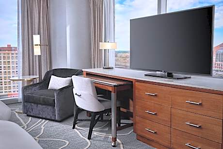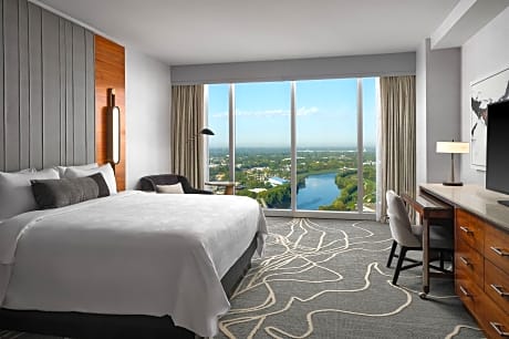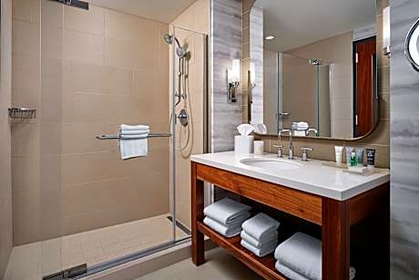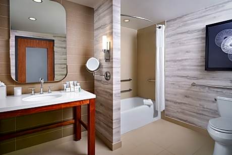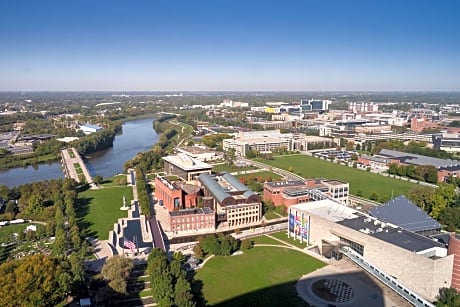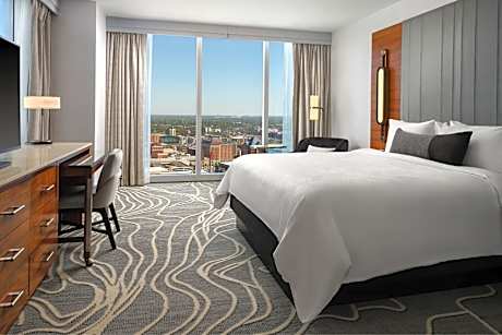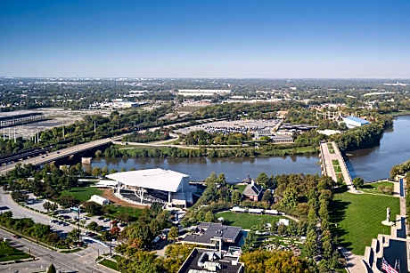 Connected to the Indiana Convention Center and Lucas Oil Stadium via indoor walkway bridge, this contemporary hotel is located in the heart of downtown Indianapolis and offers 2 on-site restaurants, and modern fitness center. Every room at JW Marriott Indianapolis provides a 40-inch flat-screen LCD TV with premium cable channels and a work desk with an ergonomic chair. An iPod docking station and coffee maker are also included. OP Italian offers an upscale fine-dining experience with a menu featuring carefully crafted regional Italian cuisine for breakfast, brunch,lunch and dinner. Guests can enjoy the state-of-the-art entertainment system at High Velocity, which offers an array of beers, wines and cocktails. 24-hour in-room dining services are also offered for guest convenience. Over 103,000 square feet of flexible meeting and event space and an expansive large ballroom are available at the hotel. Valet dry-cleaning services are offered. NCAA Hall of Champions, Circle Center Mall and Indiana State Capitol are all less than a 10-minute walk away from the hotel. Indianapolis International Airport is 13 miles away.