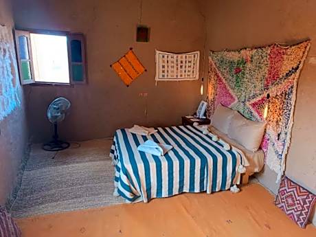 The Kasbah is located in the heart of the Drâa Valley, between Zagora and Agdz. It offers en suite guest rooms, an outdoor swimming pool and a sunbathing terrace. Set within an 18th-century fortress, Kasbah’s guest rooms are all colorfully decorated in a traditional Moroccan style. Some rooms overlook the village and palm grove. Traditional Moroccan dishes can be made to order. Meals and tea can be enjoyed on the Oulad Othmane’s terrace. Guests of the Oulad Othmane can enjoy excursions, trekking and camping in the desert as well as riding camels and 4x4s.