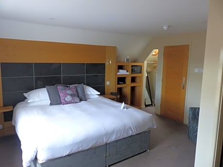This room features high-quality modern furnishings, a flat-screen TV, and a sleek private bathroom with a powerful drench shower.