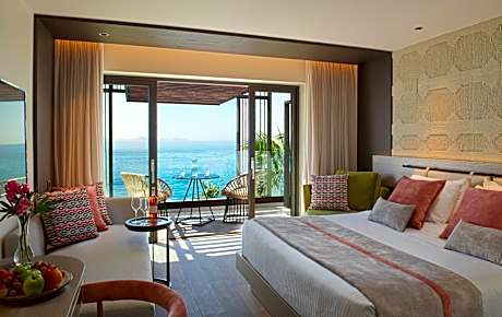 Set in Kardamaina area, the seafront Mitsis Summer Palace features a private beach, an indoor pool and two infinity pools. It offers bars and restaurants with panoramic sea views and accommodations with a private balcony. Decorated in shades of blue, Summer Palace air-conditioned rooms overlook the Aegean Sea or the hotel’s gardens. They are equipped with a satellite TV and mini-bar. Some rooms also feature a shared pool, while some superior rooms come with a plunge pool. Dining options include a buffet restaurant, an à la carte Mediterranean restaurant, an à la carte grill restaurant, a creperie and a snack restaurant. Sushi and ceviche can be sampled at the Dusk bar. Guests can also enjoy cocktails, drinks and light snacks in one of the resort’s bars in the lobby, by the pools or on the beach. Mitsis Summer Palace also offers a variety of sports facilities, such as a fitness center, 2 floodlit tennis courts, beach volleyball and beach football courts. A water park is available at the Mitsis Norida hotel nearby. Mitsis Summer Palace is 3.1 mi from the center of Kardamaina and 8.7 mi from Kos Airport. The main town and port of Kos are 20 mi away. Free Wi-Fi is available throughout the hotel and free on-site parking is provided.