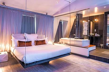 The Kube Hôtel Paris welcomes you to the charming 18th arrondissement of Paris. Combining modernity and comfort, this 4-star design hotel offers spacious rooms and suites, all decorated in a minimalist Scandinavian style, overlooking a beautiful green courtyard. 24/7 reception: A team available at all hours to meet your needs. Private Parking: For small and medium-sized cars, subject to availability and no reservation required (Recommended maximum vehicle dimensions: Height: 5.2 ft - Width: 6.1 ft - Length: 15 ft) Kube Restaurant : American Dinner, open from Tuesday to Saturday Gym: Free access 24 hours a day with state-of-the-art equipment Free high-speed Wi-Fi: Available throughout the hotel. Comfort and elegance: Air-conditioned rooms with TV, mini-bar (extra charge) and bathroom with top-of-the-range products. Want to extend your stay? Take advantage of late check-out until 2pm (extra charge, subject to availability). Location: Just 2 minutes from the La Chapelle metro station and close to the Gare du Nord train station, you'll be less than 30 minutes from Paris's main attractions, including the Eiffel Tower, the Louver Museum and the Sacré-Coeur Basilica.
