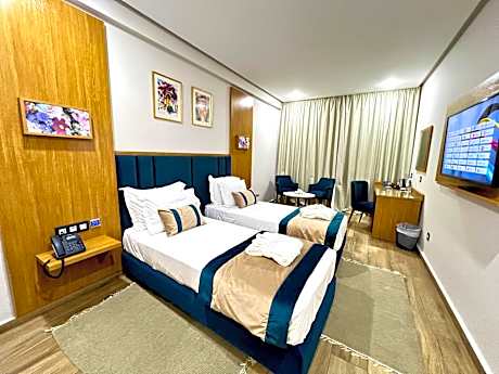 Located in Tunis, 10 miles from Salammbo Tophet Archaeological Museum, Kyriad Prestige City Center Tunis provides accommodations with a terrace, free private parking, a restaurant and a bar. With free WiFi, this 4-star hotel offers room service and a 24-hour front desk. The property has an ATM, a concierge service and currency exchange for guests. Guest rooms at the hotel come with air conditioning, a seating area, a flat-screen TV with satellite channels, a safety deposit box and a private bathroom with a shower, free toiletries and a hairdryer. All rooms will provide guests with a desk and an electric tea pot. The breakfast offers buffet, continental or American options. Popular points of interest near Kyriad Prestige City Center Tunis include Cathedral of St. Vincent de Paul, Habib Bourguiba Avenue and Bab El Bhar - Porte de France. Tunis–Carthage Airport is 5.6 miles away.