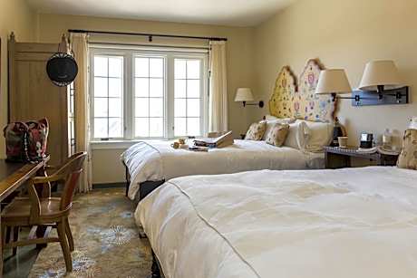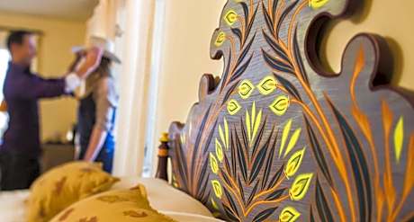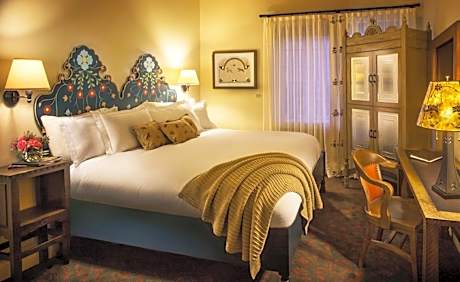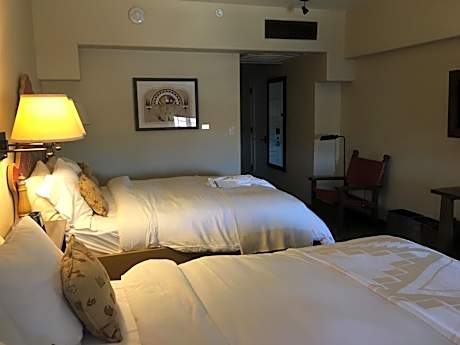 The centrally located La Fonda on the Plaza, with Santa Fe mountain views, features an outdoor pool, rooftop hot tub and spa. Guest rooms offer flat-screen cable TVs and free Wi-Fi. Rooms provide desks, safety deposit boxes and ironing facilities. They also have bathrobes and hairdryers. A gym, business center and meeting rooms are available to guests at La Fonda. The hotel offers an on-site restaurant and bar. La Fonda is less than a half mile from St. Francis Cathedral Basilica, Palace of the Governors Museum and New Mexico Museum of Art. It is also within walking distance of New Mexico State Monuments.