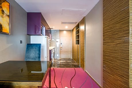 This 82-square-yard suite features a separate living room, a kitchen and a washing machine.