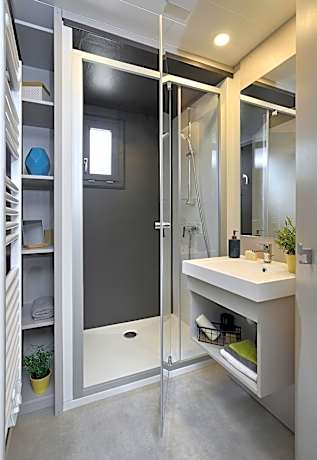 Featuring a private entrance, this mobile home also is consisted of of 1 living room, 2 separate bedrooms and 1 bathroom with a shower. Guests will find a stovetop, a refrigerator, kitchenware and an oven in the well-equipped kitchenette. The mobile home also has a barbecue. The mobile home offers a tea and coffee maker, a seating area, a dining area as well as a terrace with lake views. The unit offers 3 beds.