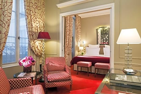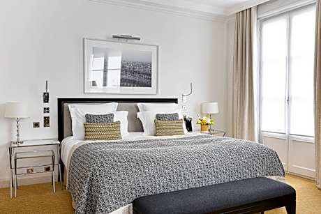 Located on the top floor of the hotel, with parisian rooftops views, this apartment features 2 lounges, one of them opening onto a furnished terrace. The spacious bathroom is fitted with a Hot tub bathtub and multi-jets shower.