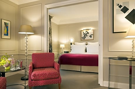 Located on the top floor of the hotel, with parisian rooftops views, this apartment features 2 lounges, one of them opening onto a furnished terrace. The spacious bathroom is fitted with a Hot tub bathtub and multi-jets shower.