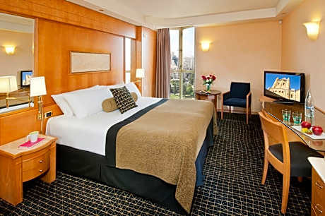 The Leonardo Plaza Hotel Jerusalem is a 15-minute walk from the Old City. It offers a spa, an outdoor swimming pool with city views, and elegant spacious rooms with free WiFi. The gourmet cuisine here is Glatt Kosher. The property is located adjacent to a picturesque synagogue, and the Mammilla Mall can be reached by a 15-minute walk. The area features lounge chairs, parasols and atmospheric background music. Drinks and snacks are available at the pool cafeteria. The spa is complete with sauna and hot tub, and a fitness center is also available. Leonardo Plaza Hotel Jerusalem overlooks Independence Park and is near the lively Nahalat Shiva district. The Great Synagogue is 5 minues' walk form the property, while the Western Wall is 1.2 mi away.