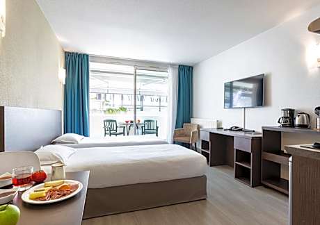 Les Loges du Park offers fully equipped self catering accommodations in the heart of Aix-les-Bains. It is 2 minutes from the train station. The studios and apartments at Les Loges are equipped with a kitchenette, private bathrooms and a TV. All units have free WiFi access. Sheets and towels are provided. Additional services at Les Loges du Park include a daily buffet breakfast. A short walk from the Loges there is a casino. Other activities nearby include water sports, bike rental and the Thermes Chevalley spa.
