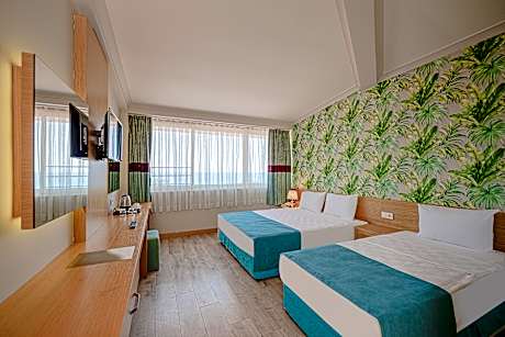 Located in Kemer, a few steps from Camyuva Beach, L'Oceanica Beach Resort provides accommodations with an outdoor swimming pool, free private parking, a fitness center and a garden. Among the facilities of this property are a restaurant, a shared lounge and room service, along with free WiFi throughout the property. The hotel features an indoor pool, sauna, karaoke and a kids' club. At the hotel, each room is equipped with a closet. All rooms are equipped with air conditioning, a safety deposit box and a flat-screen TV, and some units at L'Oceanica Beach Resort have a balcony. All guest rooms will provide guests with a minibar. The breakfast offers buffet, continental or Full English/Irish options. At the accommodation guests will find facilities including a hammam and a spa and wellness center. You can play table tennis, darts and minigolf at this 5-star hotel, and car rental is available. Speaking German, English, Russian and Turkish at the reception, staff are willing to help at any time of the day. 5M Migros is 28 miles from L'Oceanica Beach Resort, while Antalya Aquarium is 29 miles from the property. Antalya Airport is 39 miles away, and the property offers a paid airport shuttle service.