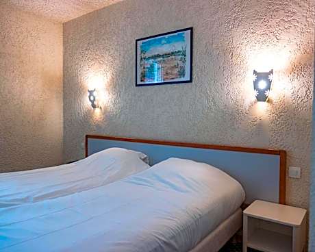 Accomodation Building only - Both reception and restaurant are centralized at Logis Le Cours 984 feet away at 10 avenue Francois Griffeuille 30800 St Gilles. All keys must be collected from Logis Le cours. 46 ft² bedroom with a 140 or 63 in bed with flat screen TV and air conditioning. Bathroom with shower or bathtub, toilet hair dryer. Free WIFI.