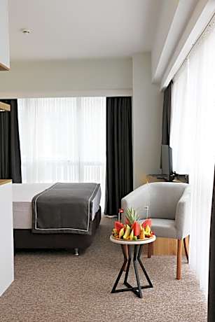 The air-conditioned single room offers a flat-screen TV with satellite channels, soundproof walls, a mini-bar, a tea and coffee maker as well as city views.