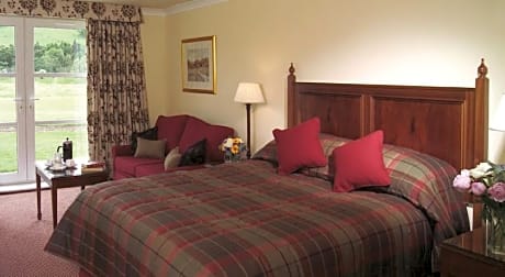 Set by the River Tweed, in a quiet countryside location, the 4-star Macdonald Cardrona Hotel, Golf & Spa features views of the Border Hills, an 18-hole golf course, an award-winning restaurant and a spa. The bedrooms at Macdonald Cardrona Hotel, Golf & Spa all have blackout curtains for a good night’s sleep. Guest can also enjoy views of the hills or the golf course as well as many facilities including tea and coffee. Renwicks Restaurant at Macdonald Cardrona Hotel, Golf & Spa offers fine dining and views over the golf course. 2 bars serving lighter meals are also available on site. Guests can make the most of the hotel’s spa or use the health club, which has a sauna, a gym and a swimming pool. Other activities available at the Cardrona Hotel include golfing, fishing, shooting, canoeing and quad biking. Edinburgh is a 40-minute drive away.