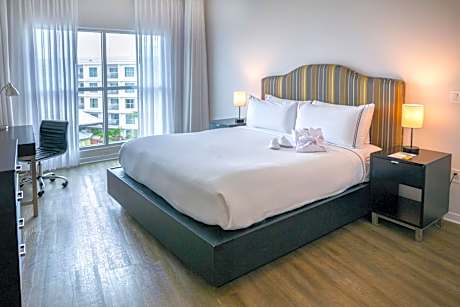 Meliá Orlando is a full-service Walt Disney World Good Neighbor® hotel located in the town of Celebration originally developed by The Walt Disney Company, only 2.5 mi from Walt Disney World® Free Shuttle is provided for all guests to and from the major surrounding theme parks and water parks: Universal Orlando™ just 12 miles away, SeaWorld Orlando™ 10 miles away and Walt Disney World ® Each suite features A full-size kitchen equipped with stainless steel appliances including refrigerator, stovetop, dishwasher and microwave. As well as a living room with 50-inch flatscreen Cable TV, dining table and a queen size sofa sleeper in addition to a private balcony. A laundry room with washers and dryers are available for guest use on each building of the hotel. The Meliá Orlando offers a wide and varied activities program, designed for all ages and tastes. Featuring indoor and outdoor activities, games and experiences for the young, and the young at heart so that adult guests have time to lounge by the relaxing pool while the kids have fun. An on-site restaurant and bar with poolside service is provided serving breakfast, lunch and dinner daily. The café area at The Wilson proudly serves Starbucks® coffee. Meliá guests enjoy free full access and usage of the 3-story, 40,000 sq. foot gym at the AdventHealth Wellness Center Celebration located next door to the property. On-site, guests may also feel the energy of instructor-led studio lessons and rides with the Immersive Cardio on their Peloton Bike and Mirror workout spaces available to rent for private sessions. The property is dog friendly and has a dog park on-site to accommodate pet owners while on vacation. All Guests have free access to a daily cocktail hour to enjoy free drinks Welcome Refreshments and snacks in rooms included Ice Skating Ring will be fully operational from October 20th until December 31st. This property is just 8 miles away from the new Universal Epic Universe™. Melia Orlando is only 8 miles for the Universal Epic Universe theme park.