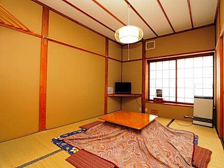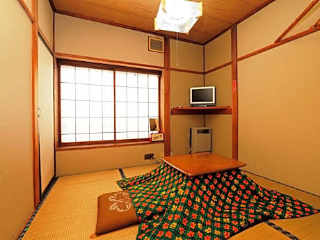 The twin room features air conditioning and tatami, as well as a shared bathroom boasting slippers. The unit has 2 futons.