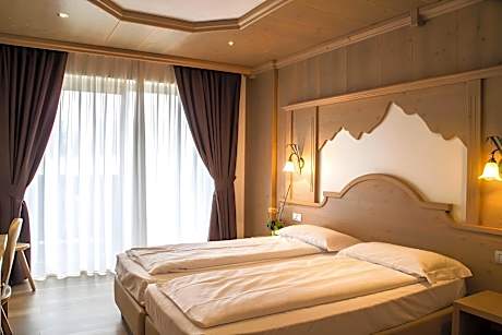 Admire the view across the valley and the Dolomites from your private balcony at Miraval Hotel. Relax in the wellness center, which includes a gym, swimming pool, and sauna. This cozy hotel features 39 guest rooms, each with satellite TV and a balcony. The hotel has a large garden where you can sit back and enjoy the peace and quiet. A self-catering studio is also available; giving you complete independence. If you are looking to really pamper yourself then the wellness center is ideal. You will find a hot tub, Turkish bath, and a swimming pool. Your day at the Miraval Hotel begins with a generous breakfast buffet. The traditional restaurant serves a daily set menu of regional and international dishes. The bar provides a relaxed atmosphere where you can enjoy a post-dinner drink.