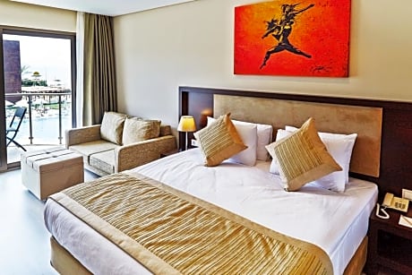 The MYELLA Resort & Spa offers first-class comfort in a unique setting, perfect for a relaxing family holiday. This 2015 beachfront hotel boasts a private sand and gravel beach. Located near the town center, it's just 1km from entertainment, restaurants, and bars, and 50km from Bodrum Airport. The hotel features 255 rooms, 24-hour reception, Wi-Fi in public areas, two restaurants (one buffet and one à la carte with Italian, Mexican, and Turkish cuisine - included once per stay with all-inclusive bookings), five bars including pool and snack bars, a hair salon, and shops. Guests can also enjoy two pools, a sun terrace with sunbeds, parasols, and cushions, and beach towels. Additional amenities include a disco, on-site doctor consultations, room service (extra charge), laundry service, and free parking. VISA and Mastercard are accepted. Taxi and dolmus connections are readily available.