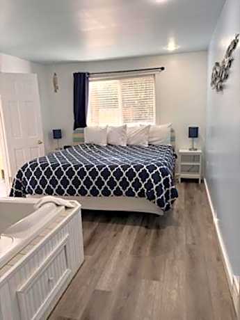 New Buffalo Inn & Spa is located in New Buffalo, a 12-minute walk from New Buffalo Beach. With massage services, the 2-star inn has air-conditioned rooms with free WiFi, each with a private bathroom. Selected rooms here will provide you with a kitchen with a fridge, a dishwasher and an oven. All guest rooms in the inn are equipped with a TV and a hairdryer. At New Buffalo Inn & Spa guests are welcome to use a hot tub. South Bend Regional Airport is 29 miles away.