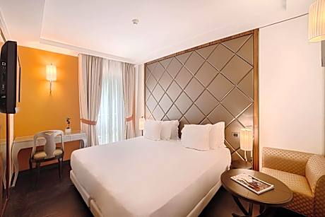 Featuring a roof-top terrace featuring a cocktail bar and panoramic views, NH Collection Taormina is set in the heart of Taormina's historical center. It features an à la carte restaurant, spacious rooms, a modern wellness center, and an infinity pool overlooking the bay. All rooms at the NH Collection Taormina hotel have design bathrooms with a shower, bathrobes, and slippers. They come with LCD TV with satellite channels, and free wired internet. The hotel has an exclusive 853 ft² spa area that comes with a sauna, a Turkish bath, and therapy showers. It also includes a tea room. The outdoor swimming pool is equipped with a bar, sofas, sun loungers, tables, and chairs. Each morning, guests start the day with a breakfast featuring organic product, such as yogurt, jams and a selection of homemade pressed juices. Featuring a view on the Greek Theater, the Zefiro restaurant specializes in Sicilian cuisine. Corso Umberto I, the city's main street, is just a few minutes away on foot. The property is well connected by the A18 motorway. License Number(s): IT083097A1SDC4TXM8