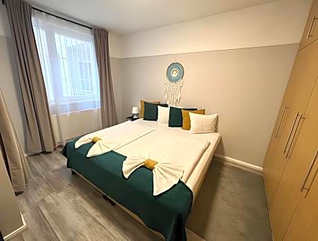 Set in Budapest, Nova Apartment is a sustainable apartment, which provides air-conditioned rooms with free WiFi and private parking. This 3-star apartment offers a elevator and luggage storage space. Each room includes a terrace with views of the garden. Featuring a well-fitted kitchen with an oven and a microwave, each unit also comes with a safety deposit box, a cable flat-screen TV, ironing facilities, desk and a seating area with a sofa. A toaster, a fridge and stovetop are also provided, as well as a coffee machine and a kettle. The units include a private bathroom, a hair dryer and bed linen. Breakfast is served nearby the property. Popular points of interest near the apartment include Blaha Lujza Square, Dohany Street Synagogue and House of Terror. The nearest airport is Budapest Ferenc Liszt International, 8.7 mi from Nova Apartment, and the property offers a paid airport shuttle service. Free bicycle rental is also available on-site.