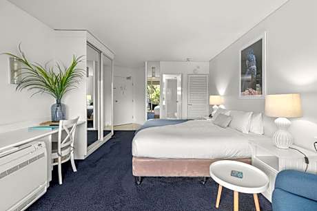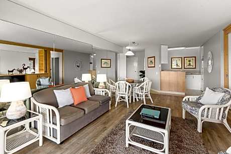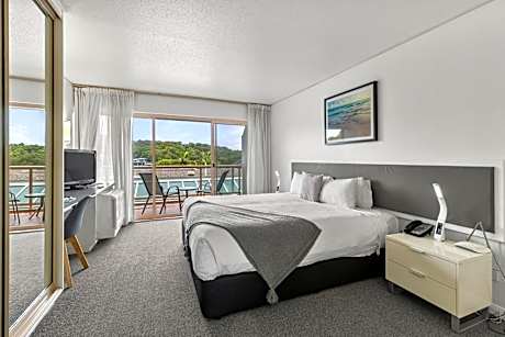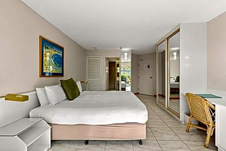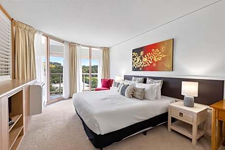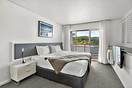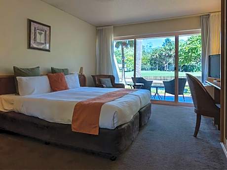 Located on the beach at Charlesworth Bay, the 4-star Pacific Bay Resort features stylish modern rooms, plus a restaurant and bar. Facilities include a 9-hole golf course, 3 swimming pools, on site gym and a day spa. Pacific Bay Resort is only 10 minutes’ drive from the center of Coffs Harbor. The Big Banana is less than 5 minutes’ drive away and Coffs Harbor Airport is a 15-minute drive away. Each room and suite has a private balcony or patio with views of the lagoon, gardens or nearby mountains. Air conditioning, a flat-screen TV with cable channels including Sport channels, tea/coffee making facilities and a refrigerator are provided. The resort features 3 tennis courts and a basketball court. Tranquility Beauty & Massage provides beauty and body treatments as well as a sauna room and heated spa pool. Bayside Bar and Grill offers buffet breakfast and an all-day à la carte menu, with an outdoor terrace overlooking the waterfall and lagoon. The cocktail bar has a widescreen TV and there is a games room with a pool table, located above the bar.