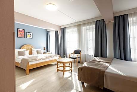Providing free toiletries, this triple room includes a private bathroom with a bath, a shower and a hairdryer. The triple room provides a wardrobe, a safe deposit box, parquet floors, heating and a TV. The unit offers 3 beds.