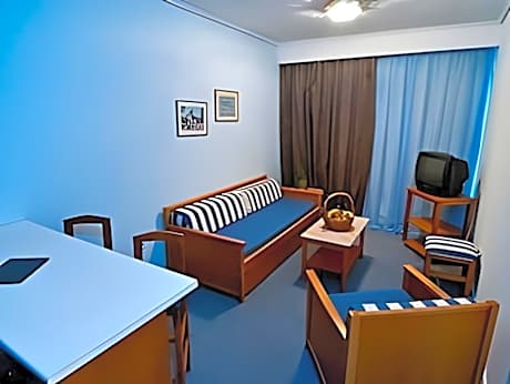 This 4-star hotel is in the Athens Riviera and features comfortable and spacious suites and apartments, and has an adjoining conference center. Free Wi-Fi is available throughout the hotel, apartments, lobby, restaurant and pool area. Close to these apartments you will find the bustling Glyfada shopping center, the marina, and clubs and restaurants. For those who would like to travel further and explore the city, you are only 30 minutes from Athens International Airport, the Plaka district and the Acropolis. Italian furniture and lavish fabrics are only one aspect of the well-catered suites with spacious bedroom and sitting room. The writing desk and internet access will help facilitate your business endeavors away from the office. You can enjoy spending your time in the hotel complex, whether using the outdoor swimming pool, relaxing in the hot tub and garden, or enjoying a drink at one of the bars or the open-air restaurant. Breakfast is served from 7 am until 10 am. The restaurant opens at 12 pm for lunch and also serves dinner. A professional conference center with 2 halls is available. Pleasant and discreet rooms can accommodate up to 200 people.