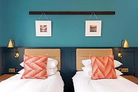 The en-suite has a high-pressure rain shower, bathrobes and toiletries. These rooms have views of the town center. There is a small double bed with down duvets and pillows and Egyptian cotton bedding.