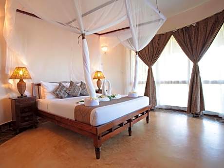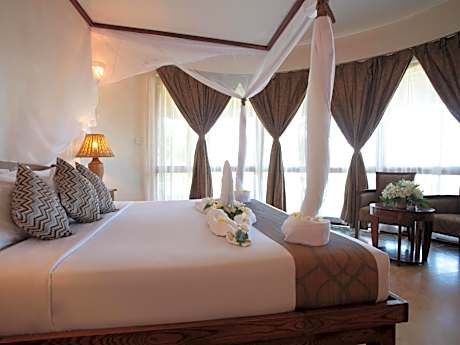 Ocean Paradise Resort & Spa is located in Pwani Mchangani and features an outdoor pool, restaurant and fitness center. The elegant and air-conditioned rooms are equipped with a balcony, satellite TV and tea-and-coffee-making facilities. Each room includes a mini-bar, seating area and private bathroom with a shower. The beds are draped with a mosquito net. The restaurant serves a sumptuous breakfast and the poolside, Jahazi Restaurant offers light snacks and wood-fired pizzas. This beachfront resort features an array of activities including canoeing, cycling and table tennis. Guests can unwind at the spa which has a sauna, 2 hot tubs and offers a selection of treatments. Nearby attractions include the Kiwengwa Pongwe Forest. Free WiFi is available in public areas and the Zanzibar International Airport is 31 mi away. --------------------------------- *** Half Board Package - Includes *** Meals: themed buffet dinner and a buffet breakfast. Drinks Are NOT included in this package. --------------------------------- *** All Inclusive Package - Includes *** Meals: themed buffet dinner and a buffet breakfast. Drinks - Soft drinks, bottled water, house wines, local beers, local pouring brand spirits, cocktail of the day, regular tea/coffee. --- Package conditions: The package will be valid during your stay from 10 am until 11 pm daily. Meals & drinks consumed before or after these times will be charged to your room account as per the menu price accordingly. The all inclusive package starts at 12pm on the day of your arrival and ends at 12 pm on the day of your departure. ---------------------------------