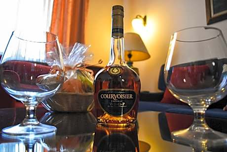 This air-conditioned room features a seating area, satellite TV and a bathroom with bathtub.
