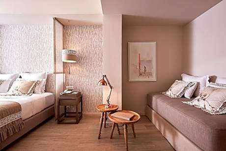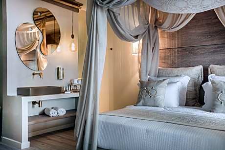 Palladium Hotel is located at Platys Gyalos, a 5-minute walk from Psarou and Platys Gyalos Beaches, as well as just a breath away from the famous Nammos. It is a 5-star hotel featuring free WiFi in all areas, an outdoor and an indoor heated swimming pool, a lavish spa and fashion boutique. A state-of-the art fitness center and sauna are also available. Each of the elegant suites and rooms is air-conditioned and includes a seating area, a flat-screen TV with satellite channels and furnished private balconies. All units in the hotel are equipped with a coffee machine, hair dryer and ironing facilities. Korres toiletries can be found at the private bathroom. Some units also feature a private pool or hot tub. Guests are greeted with a welcome drink and wake up to a rich American breakfast buffet served daily. Guests in rooms with a private pool can also enjoy a floating breakfast in the privacy of their own pool. Services that can be enjoyed at the spa center include massages, hair, beauty and facial treatments, hammam and hot tub. . La Veranda restaurant serves innovative Mediterranean cuisine created from fresh Greek products. Palladium’s lobby bar, overlooking the Aegean sea and the starlit swimming pool offers Signature cocktails. The poolside bar offers lounge-style sunbeds and refreshing drinks. Other options include a snack bar. In-room dining is also available upon request. The hotel’s 24-hour front desk can arrange baby-sitting and laundry service. Guest services include free two-way transfer to/from Mykonos Airport/Port, concierge service and doctor on call. Mykonos town and Mykonos airport are 10-minute drive away. Free on-site parking is available. Guest services include free two-way transfer to/from Mykonos Airport/Port from 07:00 until 00:00.
