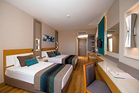 Offering a private beach area, an outdoor pool and an indoor pool, Palm World Side Resort & Spa is located in Side. This all-inclusive hotel offers facilities such as gym, spa center, water park and table tennis. Guests can benefit from free WiFi access in all areas. Each room here will provide you with a flat-screen TV, air conditioning and a balcony. Featuring a shower, private bathroom also comes with a hairdryer and free toiletries. Daily breakfast, lunch and dinner are served in open buffet style. You can also enjoy various dishes at the on-site à la carte restaurant. Other facilities offered at the property include entertainment staff, a shared lounge and a games room. Free private parking is also available on site. The hotel is 3.5 mi from Side Antique City, 3.5 mi from Side Museum and 3.5 mi from Side Theater. Antalya Airport is 31 mi away. License Number(s): 17211