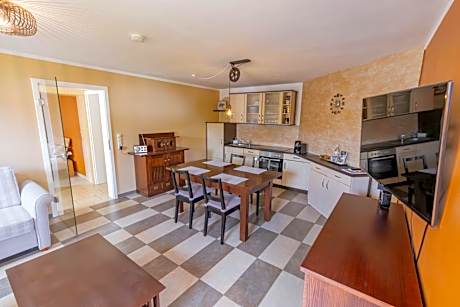The Pension Schlossidyll is located at the end of a residential street in one of the most exclusive residential areas of Wernigerode. With the best view of the castle and yet close to the city center, you will be welcomed by comfortably furnished holiday apartments. A symbiosis of vacation, active relaxation and a very exclusive accommodations in the northern Harz. We offer you a rich breakfast or alternatively a bread delivery service. Modern entertainment facilities with high-speed internet and free WiFi are available in all our rooms. The spa & wellness area welcomes you with a Finnish sauna and a hot tub. In the relaxation area you can end the evening comfortably in front of the fireplace. Parking and charging facilities are available directly in front of the pension.