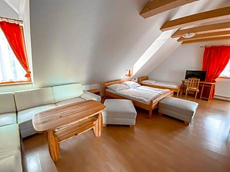 Teniscentrum is a mountain-style guest house located in the center of Tatranska Lomnica in the High Tatras, only 1312 feet from the Skalnaté Pleso ski elevator. It offers a covered tennis hall where you can enjoy playing tennis as well as a badminton, a volleyball or a hockeyball. Each room at the Teniscentrum Penzión features satellite TV, extra long beds, and a bathroom with hairdryer. Guests can enjoy Slovak and international cuisine at the onsite restaurant. here you can also find a bar, a smoking area and a summer terrace. The Teniscentrum also features an outdoor ice rink, with skates available for hire. A ski school is just 33 feet away, and a public swimming pool with a sauna is 262 feet away. Ski slopes, a cable car, and cycling trails are all nearby. Free private parking is available at Penzión Teniscentrum. Transfers to nearby ski areas, including Strbske pleso, are provided on request. Poprad is 11 mi away.