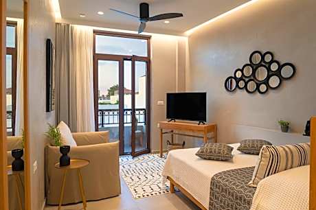 Petalo Suites offers beauty services and air-conditioned accommodations with free Wifi in the center of Rethymno, a 15-minute walk from Rethymno Beach. There's a private entrance at the condo hotel for the convenience of those who stay. The rooms include a balcony with city views. Featuring a well-equipped kitchen with an oven and a fridge, each unit also comes with a safety deposit box, a satellite flat-screen TV, ironing facilities, wardrobe, and a seating area with a sofa. There's a private bathroom with shower in every unit, along with bathrobes, slippers, and a hair dryer. At the condo hotel, the units include bed linen and towels. Breakfast is available, and includes à la carte, continental and full English/Irish options. Popular points of interest near the condo hotel include Archaeological Museum of Rethymno, Municipal Garden, and Historical and Folklore Museum. Chania International Airport is 43 miles from the property. License Number(s): 1180202