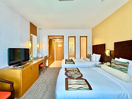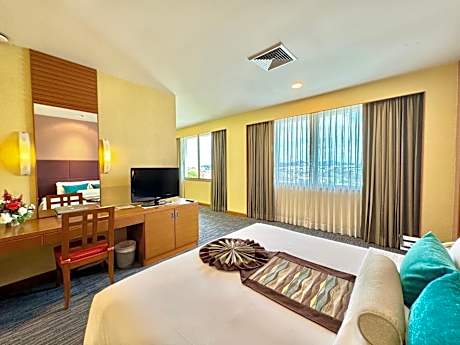 Experience an abundance of unparalleled facilities and features at Phuket Merlin Hotel. Maintain seamless communication using the complimentary Wi-Fi at hotel.Effortlessly arrange transportation to and from the airport using the hotel's airport transfer services. For visitors traveling by automobile, complimentary parking is available. During your stay at this fantastic hotel, the attentive front desk personnel can provide you with a range of amenities such as luggage storage and safety deposit boxes. At the hotel, utilize the on-site dry cleaning service and laundry service to maintain your beloved travel attire fresh, allowing you to bring fewer clothes.Craving relaxation? Make the most of your stay at the Phuket Merlin Hotel with convenient amenities like room service and daily housekeeping at your disposal. Kindly note that smoking is prohibited in the hotel to ensure fresher air for all visitors. For visitors wishing to smoke, designated smoking zones can be found. At Phuket Merlin Hotel, every guestroom is provided with convenient amenities and fittings to ensure a comfortable stay. Enhance your experience at hotel with the knowledge that certain rooms are equipped with linen service, blackout curtains and air conditioning for your convenience. A few accommodations within Phuket Merlin Hotel offer unique design elements such as a separate living room. Certain rooms boast in-room amusement features such as television and cable TV, offering guests an enjoyable stay. In select rooms at the hotel, a refrigerator is available for those moments when it seems necessary. It is worth noting that certain guest bathrooms feature a hair dryer, toiletries and bathrobes for your convenience. Begin your day with a scrumptious on-site breakfast available each morning at Phuket Merlin Hotel.Begin your day feeling refreshed and invigorated as you enjoy a delightful cup of quality coffee available at the cafe situated within the hotel.At the hotel, an assortment of easily accessible and delicious meal choices are available to satisfy your appetite whenever it strikes.Create unforgettable moments with your fellow voyagers just steps away, at hotel's karaoke rooms and bar, for a delightful evening together. During your stay at hotel, an array of engaging activities and amenities guarantees a delightful experience.Conclude your holiday perfectly with a visit to massage and sauna on your final days.Be sure to drop by the pool at hotel at least once during your stay.