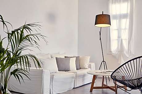 Pietra e Mare - Mykonos Moments is located in Kalo Livadi, one of the most beautiful beaches,7.5 mi from Mykonos Town, overlooking the Aegean Sea. The hotel offers 30 rooms which combine fine elegance with Cycladic tradition. Each offers balcony with sea views and is equipped with modern comforts. Guests can enjoy or spend lazy days by the hotel’s fresh-water swimming pool. The cosmopolitan Mykonos Town, as well as the airport and the port, are only a 10-minute drive.