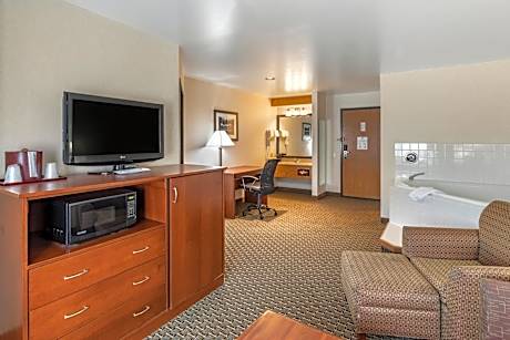 The Quality Inn & Suites Steamboat Springs hotel is the place to stay while visiting the world-famous town of Steamboat Springs, "Ski Town U.S.A.," and Strawberry Park Hot Springs. This Steamboat Springs, CO hotel is located on U. S. Highway 40 less than one mile from the Steamboat Ski Area and less than five miles to downtown with access to the ski area via the free shuttle. The Steamboat Springs and Yampa Valley area of Colorado has it all, no matter what time of year. Breakfast is served to guests daily. All spacious guest rooms include 32-inch flat-screen televisions, pillow-top mattresses, hair dryers, coffee makers with free coffee, irons, ironing boards, microwaves, refrigerators, air conditioning and cable television. Some rooms also have whirlpool bathtubs. This is a 100 percent nonsmoking hotel. Enjoy our indoor heated pool and hot tub. This Rocky Mountains, CO hotel offers free wireless high-speed Internet access, free local calls, guest laundry facilities, interior halls and bus parking. Cold-weather hookups are provided for guest convenience. This is a pet-friendly hotel; fees apply. For business travelers, this Steamboat Springs, CO hotel provides access to copy and fax services and a meeting room that accommodates up to 50 people. The area is known for its famous ski areas, however you can enjoy much more. Enjoy outdoor recreational activities like snowshoeing, ice skating and snowmobiling. In the summer time, enjoy mountain biking, hiking, fly fishing, kayaking and the Hot Air Balloon Rodeo in early July. Additional area attractions include Bridgestone Winter Driving School, Old Town Hot Springs multi-use complex, Fish Creek Falls and Howelsen Hill Ski Area. Visitors and locals alike can play a round of golf at the nearby Haymaker Golf Course. A variety of restaurants and cocktail lounges are located in the surrounding area. Take the free town shuttle and experience the town of Steamboat Springs. Enjoy gourmet restaurants, world-class shops, numerous outdoor activities and many art galleries. Take advantage of the Steamboat Health and Recreation Center and the state-of-the-art fitness center located just minutes from the hotel.