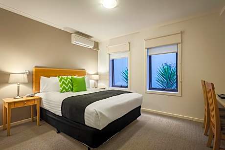 Located in the heart of Warrnambool, Quest Warrnambool offers stylish modern accommodations with air conditioning and complimentary Wi-Fi. Guests have access to an outdoor solar-heated swimming pool (best for use in summer), as well as complimentary access to the nearby local Aquatic Center which has a gym and indoor heated pools (for utilizing in the cooler months). Being a city-based hotel, we are walking distance to Warrnambool’s restaurants, cafes and shops. We are a 5-minute walk from Flagstaff Hill Maritime Village and a 13-minute walk from Warrnambool’s main patrolled beach. Our Studio Rooms are compact in size and are similar to a motel room with a small kitchenette and private bathroom. Meanwhile, the Executive Apartments are significantly larger and all feature a fully equipped kitchen with dishwasher, oven and full-sized fridge, a private laundry, spacious living and dining area plus a balcony. IMPORTANT: We do not have an elevator at our property, so most of our rooms and apartments are accessible via stairs only. Please contact the hotel to advise of any mobility issues prior to arrival. Guests have access to an onsite barbecue area, meeting facilities and free car parking (subject to availability). Quest also offers a restaurant chargeback service at selected local restaurants which suits our corporate guests.