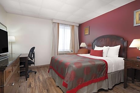 Ten hotel oferuje kryty basen i centrum fitness. Znajduje się on 10 minut jazdy od pola golfowego Green Lea i oferuje telewizję kablową z HBO w każdym pokoju. Tradycyjnie urządzone pokoje w hotelu Ramada by Wyndham oferują bezpłatne WiFi i ekspres do kawy. W każdym pokoju znajduje się również część wypoczynkowa. Niektóre pokoje wyposażone są w kuchenkę mikrofalową i lodówkę. Podczas pobytu Goście mogą delektować się śniadaniem kontynentalnym. W holu hotelu Ramada by Wyndham znajduje się kominek. Park stanowy Myre Big Island, muzeum lalek i zabawek Story Lady oraz Riverland Community College oddalone są od hotelu o 4,8 km.