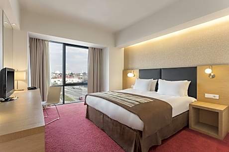 Hotel Ramada Oradea is conveniently located in Oradea, within a 2-minute drive from the historical city center. The accommodations features the Riserva Wine Spa, which embodies a fitness center, 2 saunas, a salt cave, a relaxation room and a terrace with 2 hot tubs and panoramic views of the old town center. Free WiFi and free parking are available on site. All rooms are tastefully furnished and offer digital climate control, a seating area with a smart, flat-screen TV, a laptop size safe, ironing facilities and a mini-bar. The bathroom is equipped with a walk-in rain shower and free bio toiletries. Some rooms have coffee, tea or espresso facilities. The STEAK HUB restaurant, including a bar and a large terrace, offers a wide selection of wines, international dishes, dry-aged steaks and a gourmet menu. Guests can relax and enjoy a movie or games of billiards, bowling and table tennis in the nearest shopping mall, located a 6-minute drive away. At a surcharge, guests can enjoy a wide range of wine therapies at the Riserva Wine Spa and they can also have access to a modern, fully-equipped business center with 3 large conference rooms and a board room. The Ramada hotel is 2.5 mi from the airport, 3.1 mi from the Nimphaea Aquapark and 6.2 mi from Baile Felix. Shuttle transfer is available upon request and for an extra charge.
