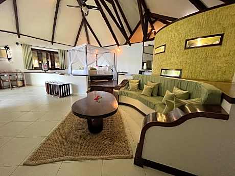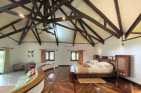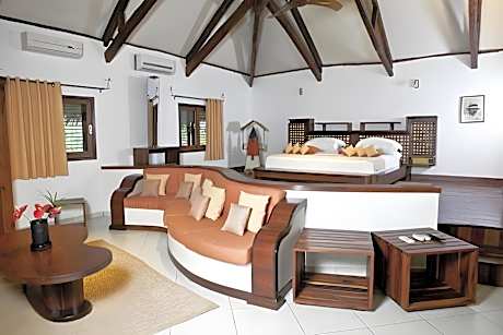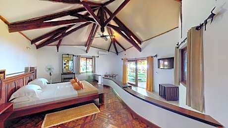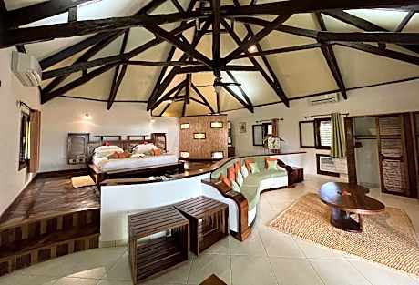 Ravintsara Wellness Hotel is located in Nosy-Be, a few steps from the beach. It offers an outdoor pool and free WiFi access in all public areas. Each air-conditioned accommodations at the Ravintsara Wellness features a satellite TV, patio and a mini-bar. The private bathroom includes free toiletries, bathrobe and slippers. A sweet and savory breakfast of croissants, cold meats and hot drinks is served every morning. Palm Beach is a 10-minute drive from the property. Andilana is 6.2 mi away.