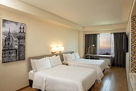 Located in Morelia’s Altozano Shopping Center, Fiesta Inn Morelia Altozano features an outdoor pool, gym and stylish rooms with free WiFi. The spacious air-conditioned rooms offer city views, satellite TV and a telephone with voicemail. The bathrooms include a shower, hairdryer and free toiletries. La Isla restaurant opens from 06:00 to 23:00, serving international cuisine. Room service is available 24 hours a day. You can also find restaurants and cafés in the shopping center. The Fiesta Inn Morelia Altozano is just a 5-minute drive from the city’s financial district and Morelia Convention Center. Morelia International Airport is less than 25 mi away.