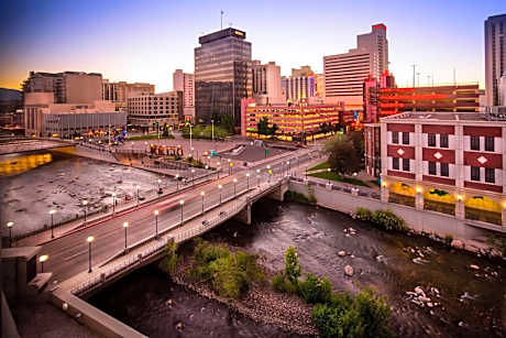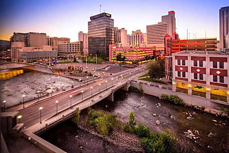 This contemporary styled Reno, Nevada hotel is on the Truckee River and 10 minutes’ drive to Reno-Tahoe International Airport. With Truckee River and Sierra Nevada Mountains views, each room includes a flat-screen TV and private bathroom at Renaissance Reno Downtown Hotel & Spa. A seasonal outdoor pool and a fitness center are offered to guests of Renaissance Reno Downtown Hotel & Spa. The national Automobile Museum is 5 minutes' walk way from this Reno, Nevada hotel.