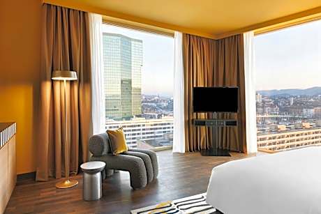 This 5-star boutique hotel enjoys a unique location in the Mobimo Tower in the trendy Zurich-West district. Many corporate offices and popular clubs like Moods im Schiffbau, Komplex457 and Hive are within walking distance. The elegant air-conditioned rooms and suites at the Renaissance Zurich Tower Hotel offer floor to ceiling windows providing panoramic views. Other features include flat-screen TVs with Chromecast, and free tea and coffee-making facilities. Guests booking a Club room or a suite category enjoy free access to the breakfast in our Restaurant as well free drinks and food during special hours at our Lucid Bar. The hotel also features a gym located on the 15th floor with an impressive view over Zurich. Atelier Five offers the best of Swiss Cuisine, Tapas and tasty Fondue. The Equinox restaurant serves a wide range of dishes and wines. Guests can relax on the summer terrace. Drinks and snacks are available in the Lucid bar. A 24/7 room service is also available. The railway station Zurich Hardbrücke is 1640 feet away providing direct connections to Zurich Central Station with the Zurich Lake and the most famous shopping mile Bahnhofstrasse within 3 minutes. Zurich Airport in Kloten is easy to reach via (S16) within only 11 minutes.