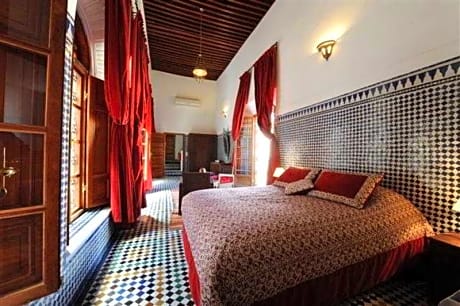 The riad is located 2 minutes from the Batha square and 4 minutes from Bab Boujloud. It is situated at the heart of the medina, by Batha Square, offering an elegant and discrete location. Fes-Saïss Airport is situated approximately 17 km away. The riad is composed of a large patio which accesses the living rooms and the dining room. The artisanal work of the doors is carved from cedar wood, while the zelliges (ceramic murals) and the sculptures on plaster are truly remarkable. The garden allows guests to immerse themselves in the plethora of aromas which fill the air. They will be able to breathe in the aroma of jasmine which climbs on a pergola, as well as verbena. With the help of attentive personnel, guests will benefit from their time in Fez, receiving a traditional Moroccan hospitality service in an authentic guesthouse yet with contemporary comfort. The property features a lobby with 24-hour reception, a TV lounge, a restaurant, wireless Internet access and room and laundry services. The spacious rooms provide high ceilings made from cedar wood. They each have an en suite bathroom with shower, and individually regulated air conditioning and central heating, except standard twin rooms which have central heating but are not air-conditioned. A fan and hairdryer also come in the rooms as standard, and they have Internet access. The riad has one of the best kitchens in Fez offering guests a world of culinary discovery. Breakfast is served each morning at the riad.